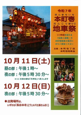 ・10月31日08時50分 「本町壱地車」写真 に 藤田様撮影 令和6年10月祭礼風景その1 を掲載 |
